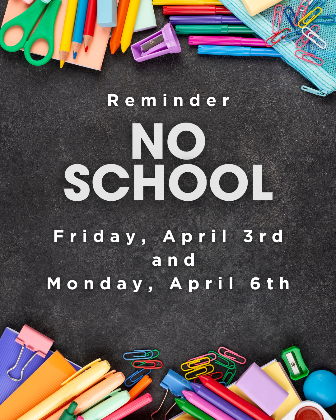 No School - April 3rd and April 6th